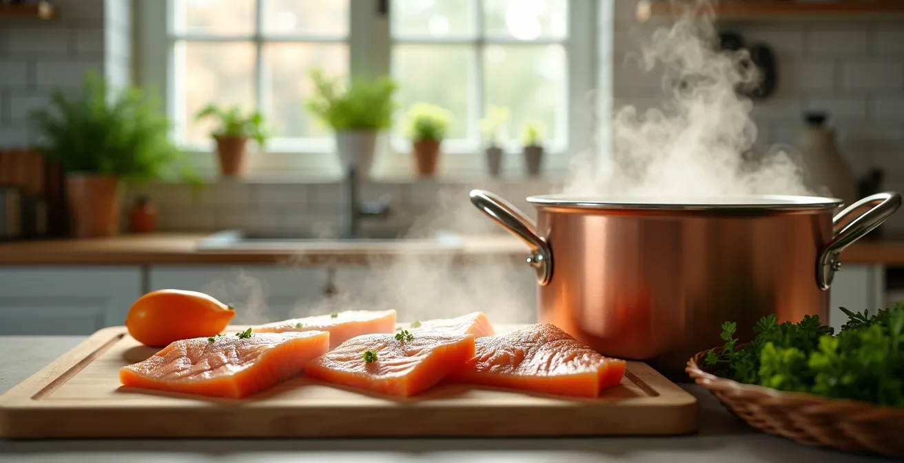 Neben dem Pochieren im Sud ist das Dämpfen eine exzellente Methode. Hier gart der Fisch im heißen Wasserdampf bei Temperaturen um 75-85 °C, ohne direkt mit der Flüssigkeit in Kontakt zu kommen. Dies bewahrt nicht nur die Textur, sondern auch den Eigengeschmack des Fisches in besonderem Maße. Beide Methoden verhindern das Austrocknen und garantieren ein zartes Ergebnis, solange die Temperatur streng kontrolliert wird.